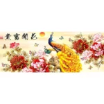 ชื่อภาพ นกยูง โบตั๋นชมพู รูปแบบ: ติดทั้งภาพ ขนาด: 50x108cm เม็ดคริสตัล: Round