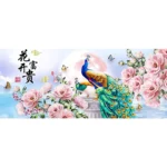 ชื่อภาพ นกยูง โบตั๋นชมพู รูปแบบ: ติดทั้งภาพ ขนาด: 50x108cm เม็ดคริสตัล: Round