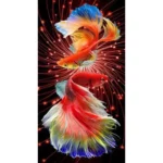 ชื่อภาพ ปลากัดคู่ (เหลือง แดง ฟ้า) รูปแบบ: ติดทั้งภาพ ขนาด: 45x70cm เม็ดคริสตัล: Round