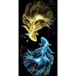 ชื่อภาพ ปลากัดคู่ (เหลือง แดง ดำ) รูปแบบ: ติดทั้งภาพ ขนาด: 55x90cm เม็ดคริสตัล: Round